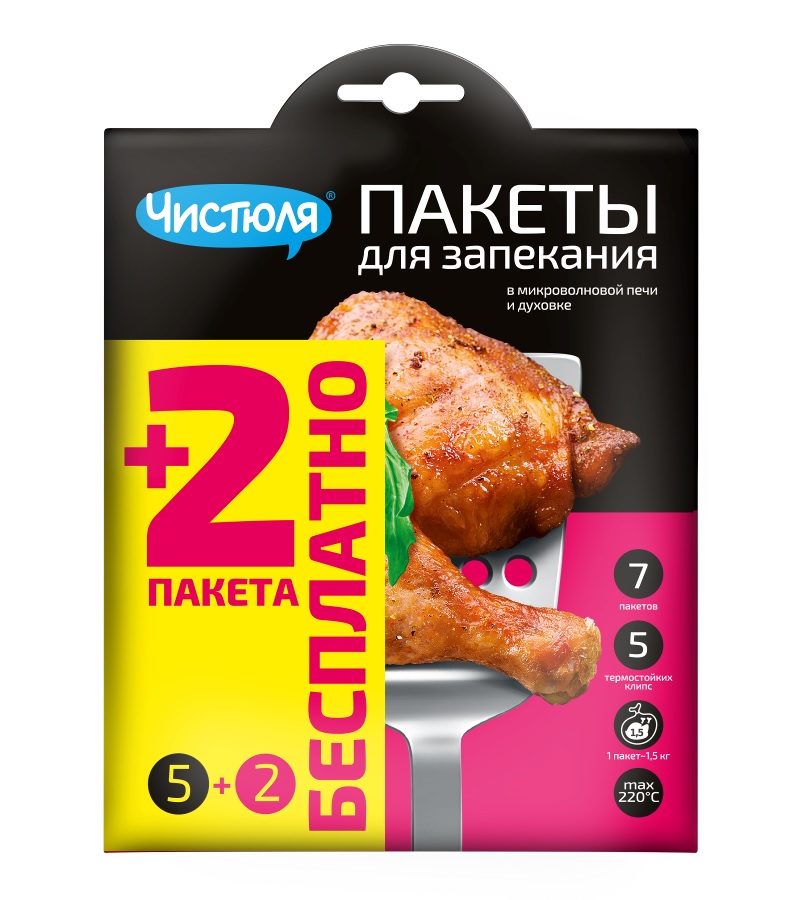 Пакеты для запекания 5шт 35х40см клипсы Чистюля (30)