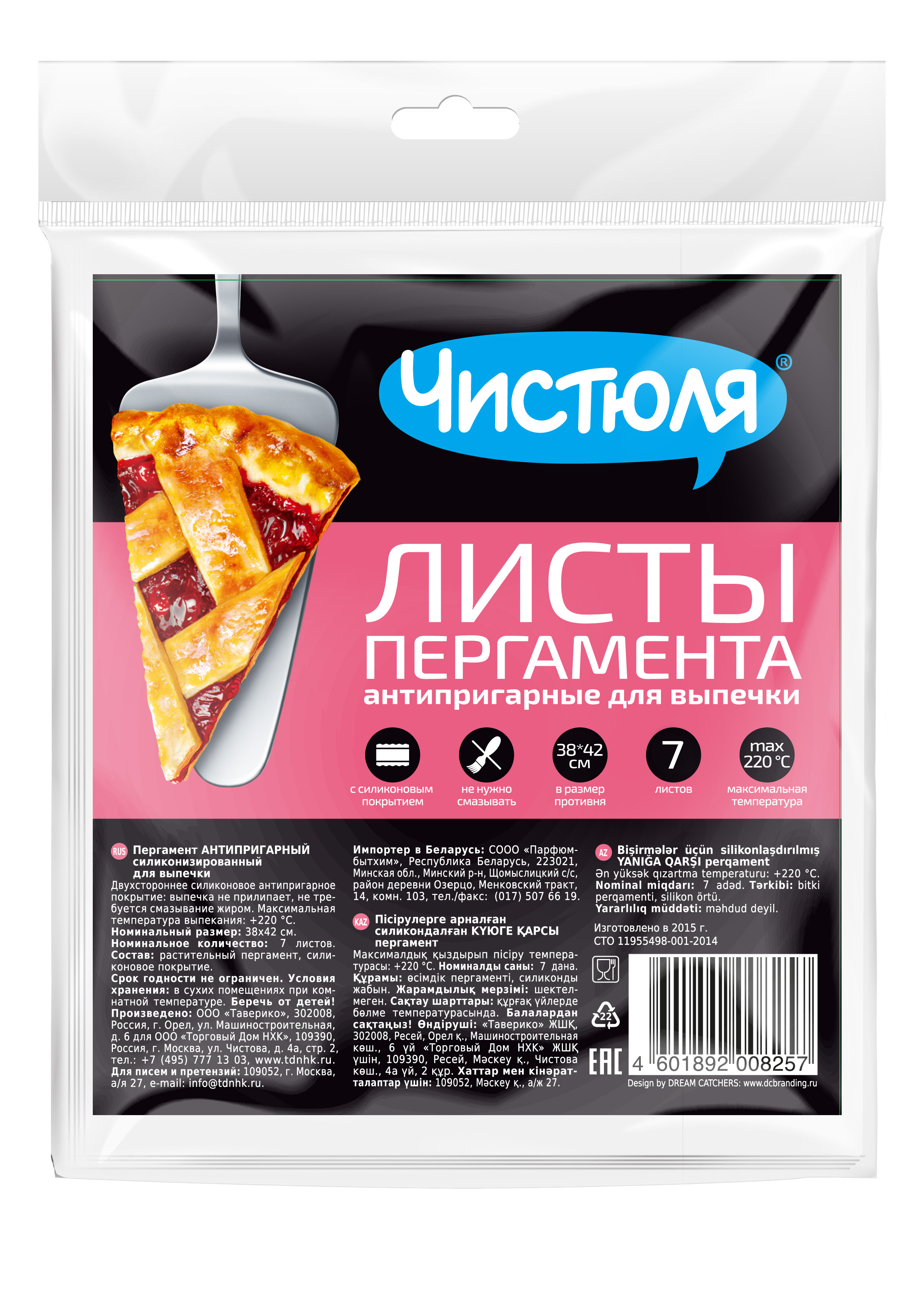 Пергамент самого удобного для кухни формата: в листах для больших противней в стандартных духовках шириной 60 см. Быстро и удобно: не нужно отрезать, не скручивается. Идеален для выпечки. Силиконизирован, не нужно смазывать. Не прилипает и не пригорает. Размер листов: 38 х 42 см