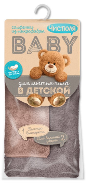 Чистюля Бэби Салфетка для пола микрофибра 2шт 30х30см и 50х60см (10)