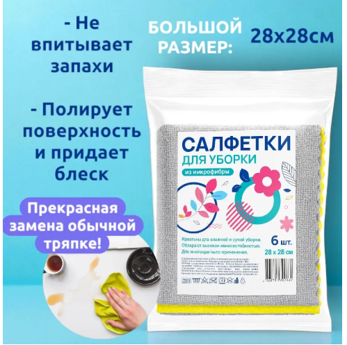 Салфетка микроф 28х28 6шт ассорти Авангард (20)