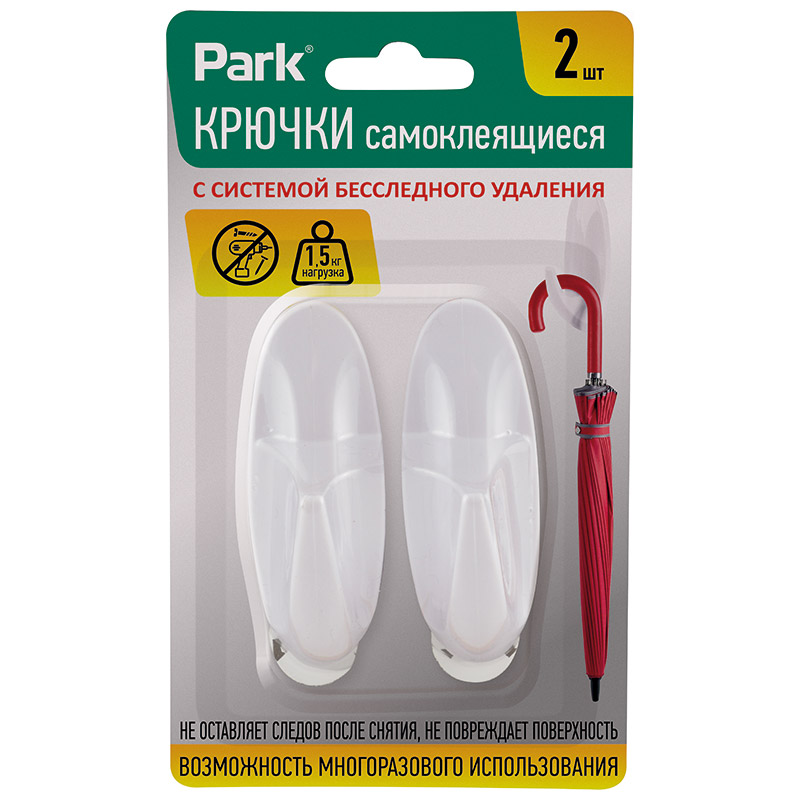 Крючок на самоклеящейся основе 3х8см 2шт ABS Park нагрузка 1,5кг (12/144)