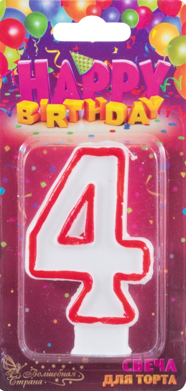 Свеча для торта Цифра 4 Волшебная страна (1*Bl) (12)