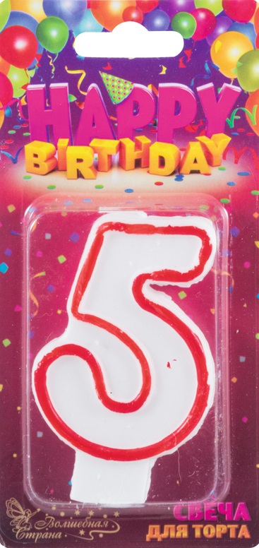 Свеча для торта Цифра 5 Волшебная страна (1*Bl) (12)