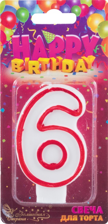 Свеча для торта Цифра 6 Волшебная страна (1*Bl) (12)