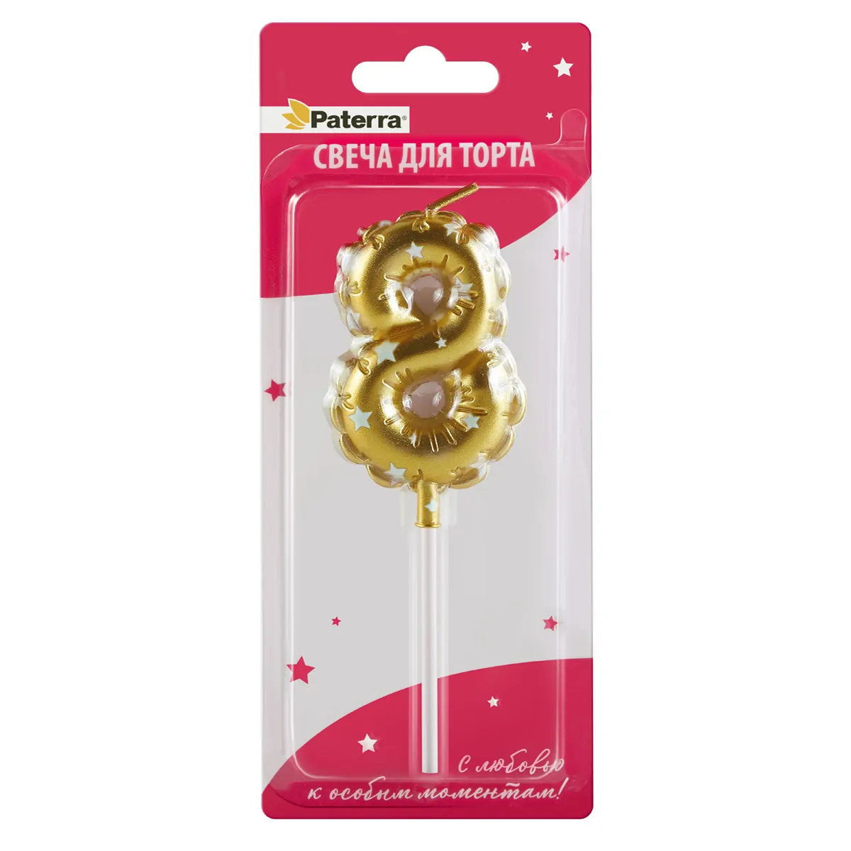 Свеча для торта Цифра 8 золотая объёмная Paterra (24)