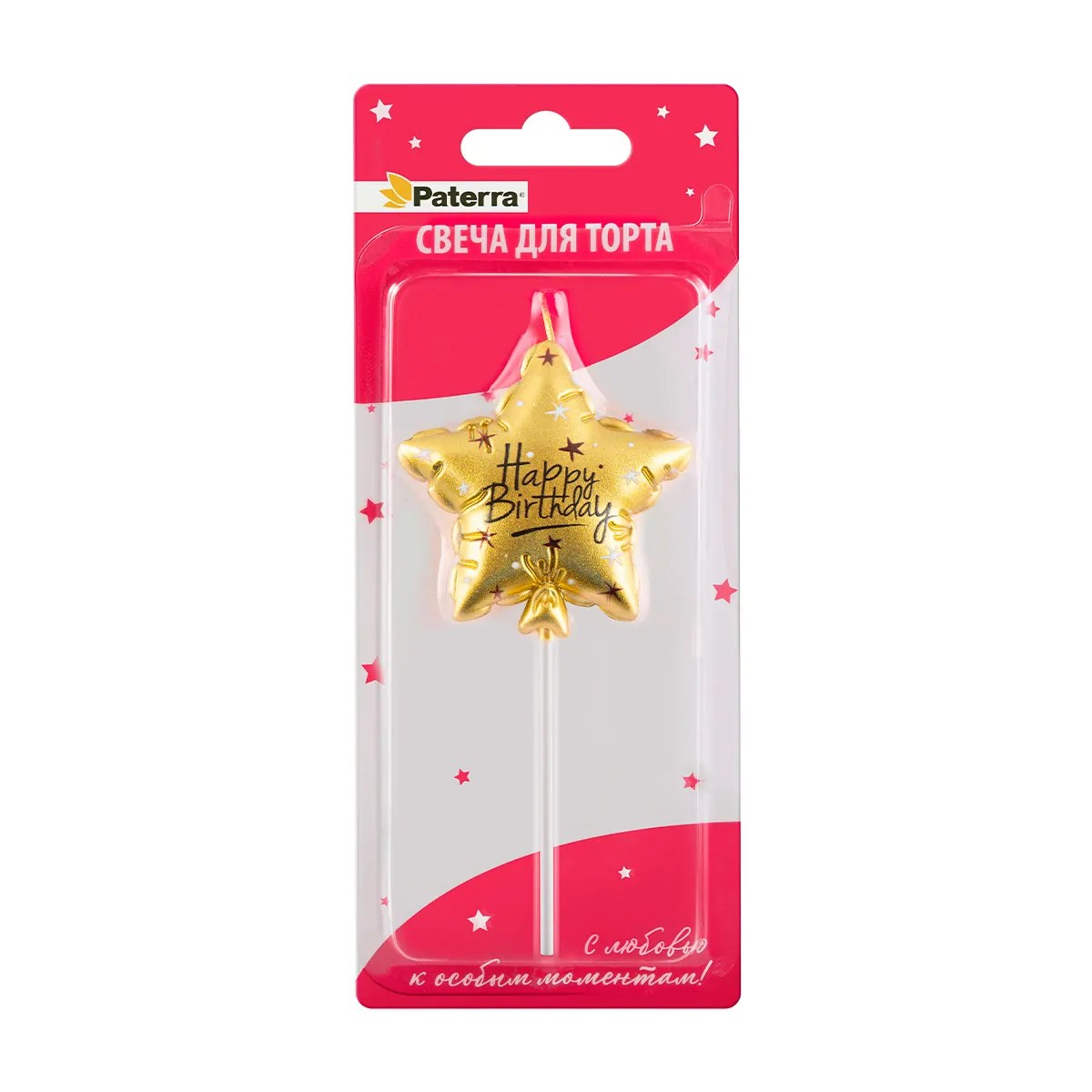 Свеча для торта Звезда Happy Birthday золотая объёмная Paterra (24)