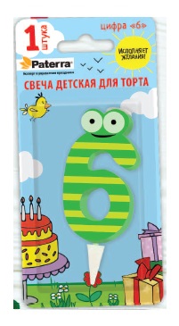 Свеча PATERRA для торта Цифра 6 (1*BL) (24)
