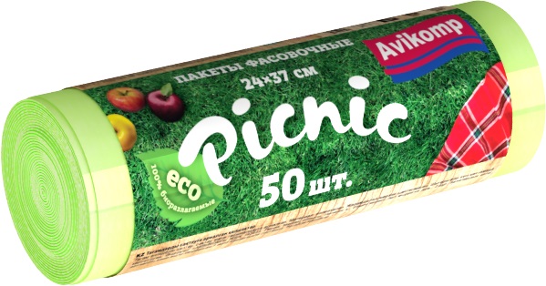 Пакеты для продуктов 24х37 50шт рулон зеленый Picnic Авикомп (40)