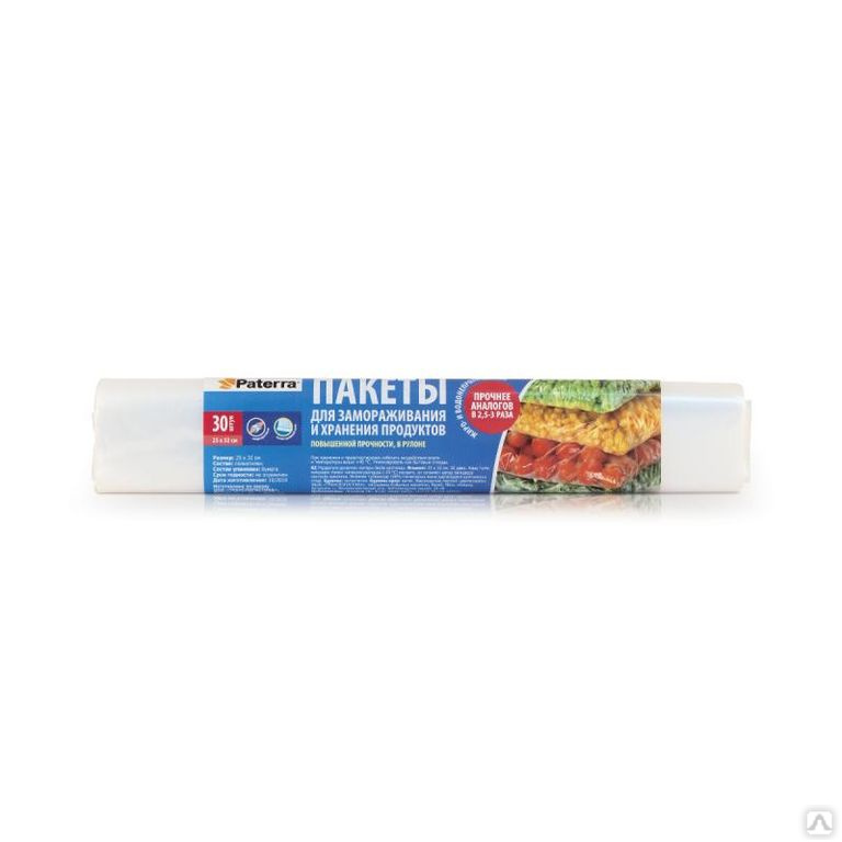 Пакеты для заморозки 25х32 3л 30шт рулон Paterra (70)
