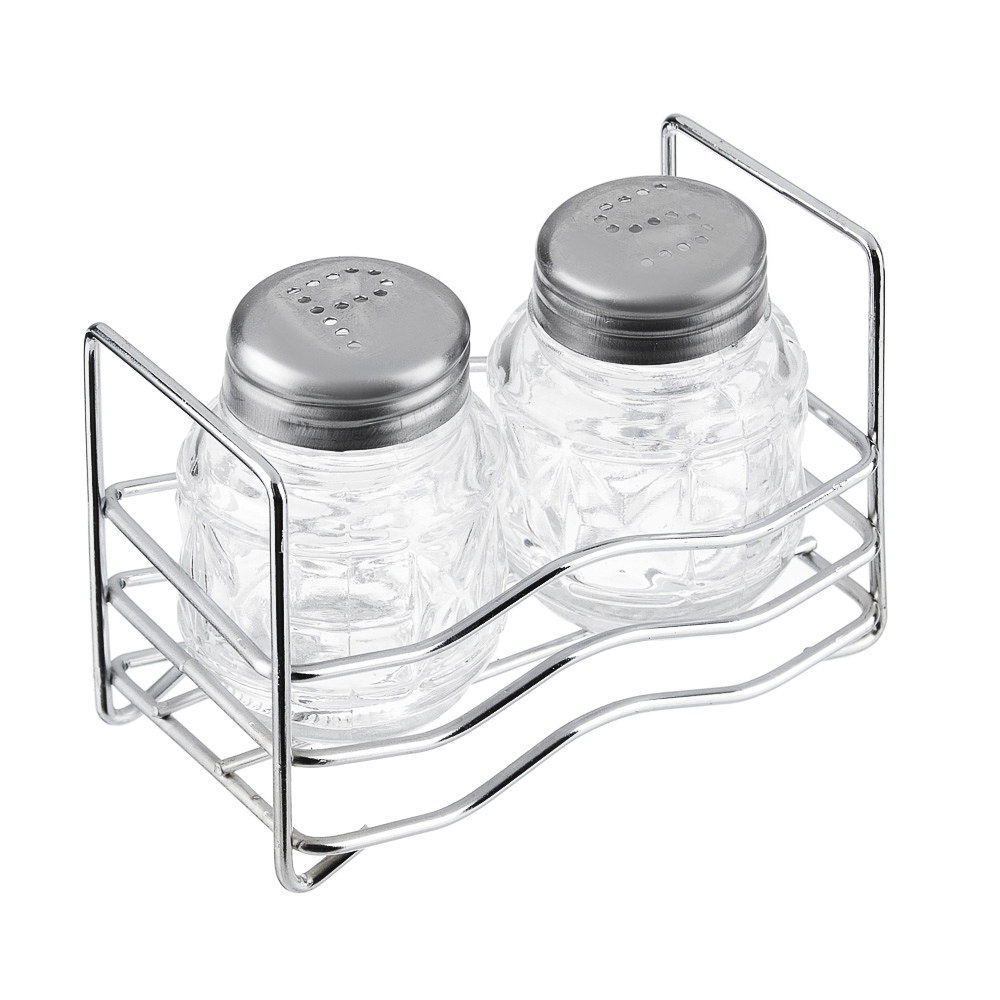 Набор из 3 предметов SPEZIA: солонка 40мл и перечница 40мл на подставке стекло, нерж сталь (48)