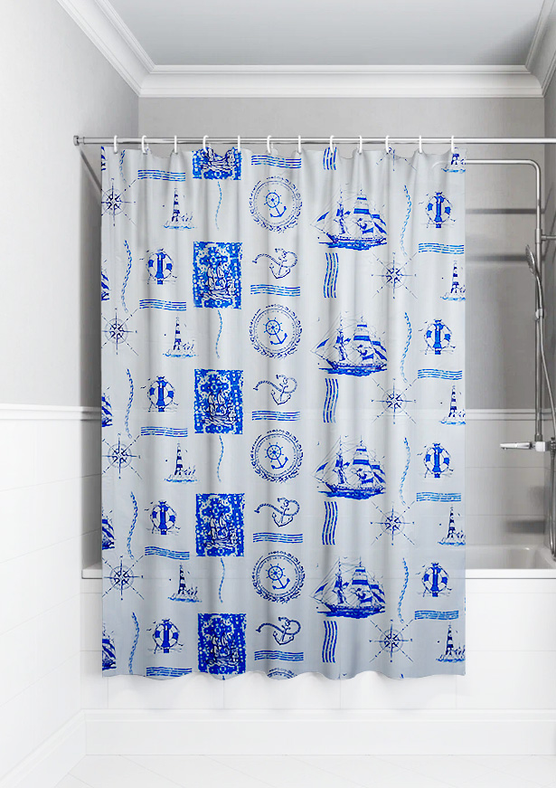 Штора для ванной 180x180см ПЭ крючки Корабли Умничка (40)