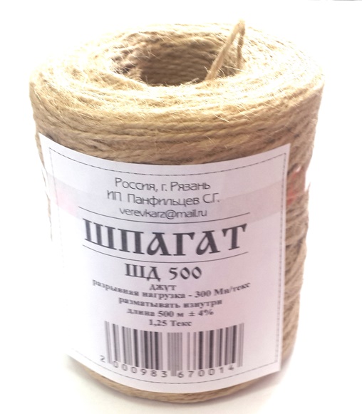 Шпагат джутовый d2мм 500м текс1250 (24)