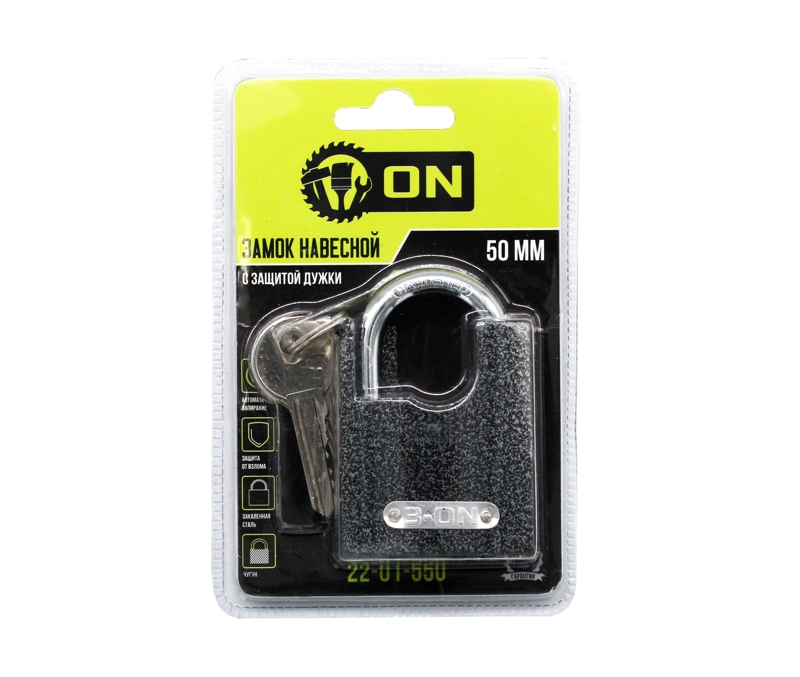 Замок навесной 50мм с защитой дужки чугун автомат запирание ON (12/96)