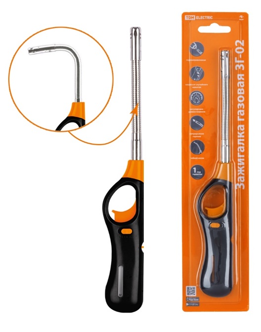 Зажигалка газовая TDM ЗГ-02 регул. уров. плам многоразовая заправка гибкий носик (48)