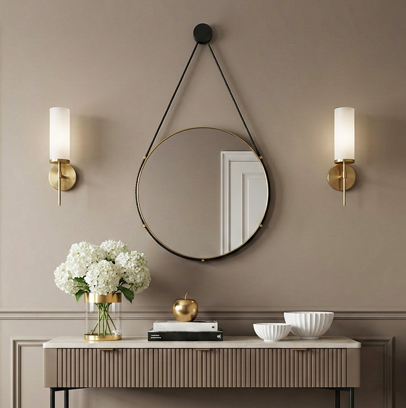 Зеркало настенное круг в металлическом корпусе d40,3 с ремешком Мансарда золото (1)