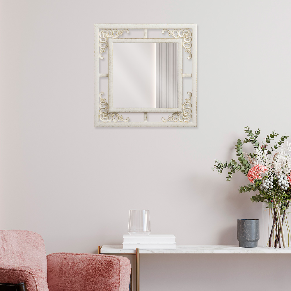 Зеркало настенное квадрат в ажурном корпусе 38*38 белый с золотом (1/5)