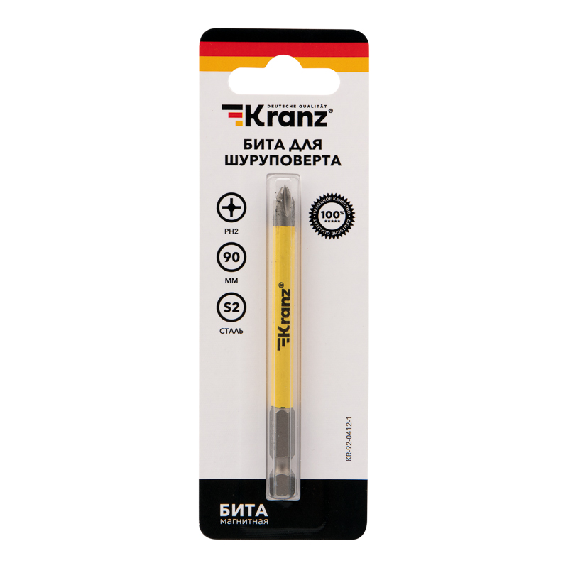 Бита для шуруповерта KRANZ PH2х90 мм предназначена для закручивания различных видов крепежа: шурупы, винты и т. д.