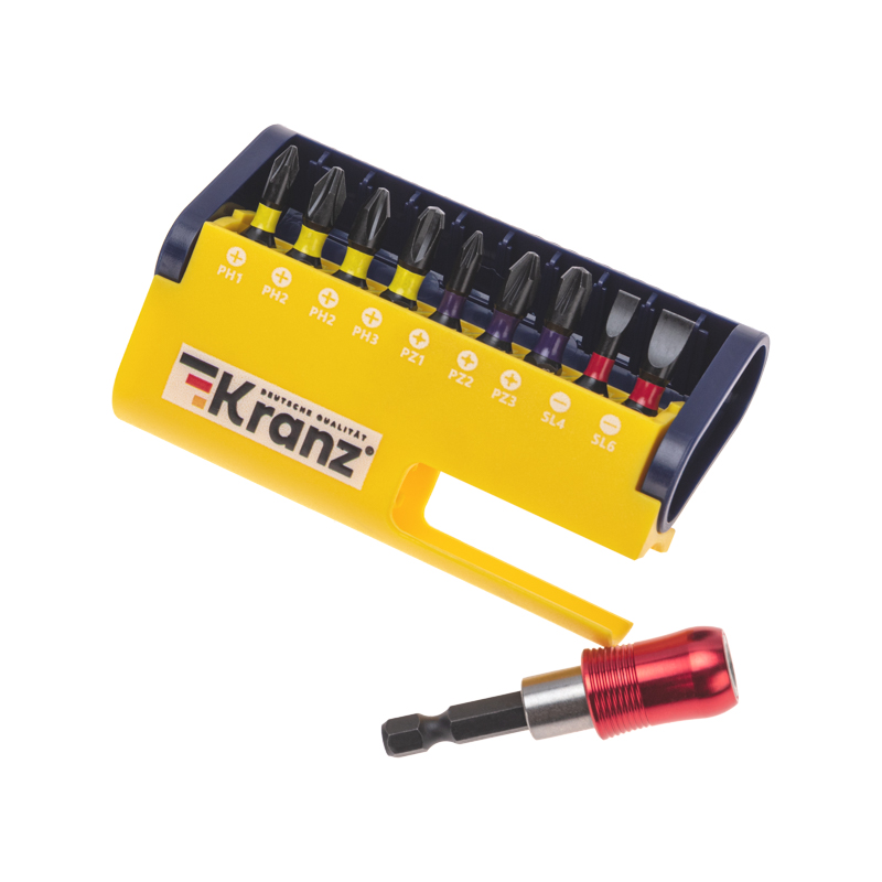 Набор бит с магнитным держателем пластиковый кейс 10шт Kranz