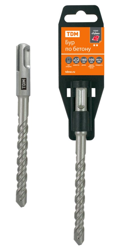 Бур по бетону 12х160х100 мм SDS-Plus 2резца держатель TDM (50)