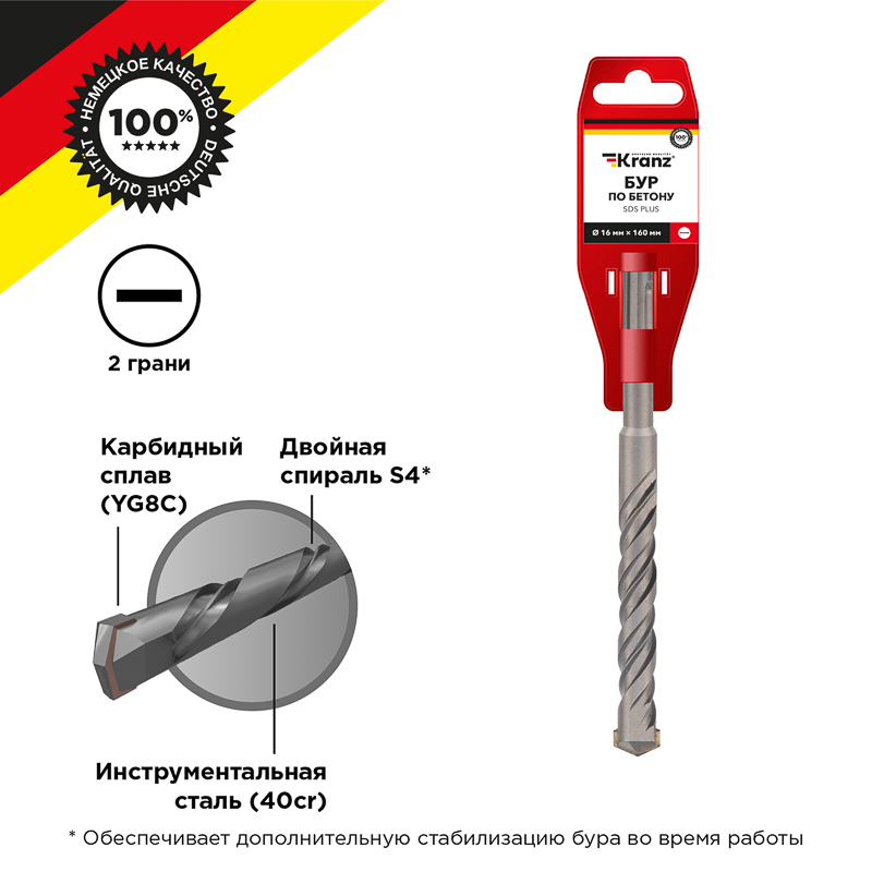Бур по бетону 16х 160х100мм SDS-plus Kranz