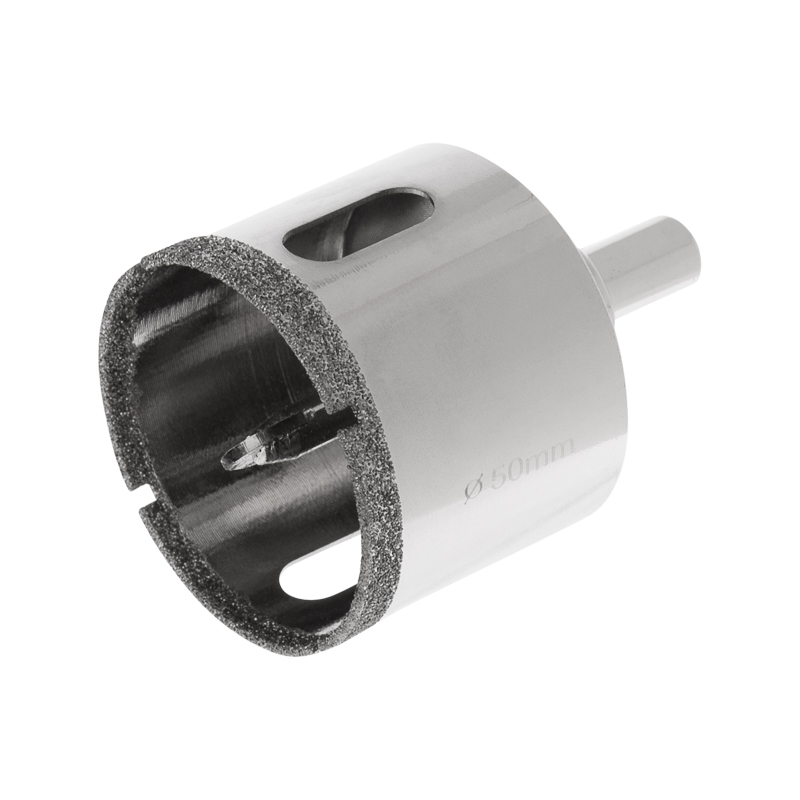 Коронка алмазная KRANZ 50 мм с центровочным сверлом. Используется при сверлении керамогранита, керамики, стекла. Покрытие алмазных коронок выполнено гальваническим способом в два слоя, что обеспечивает эффективное сверление и продолжительный рабочий ресурс инструмента. При сверлении отверстий с использованием алмазных коронок все работы производятся только с охлаждением, путем подачи в рабочую зону воды.