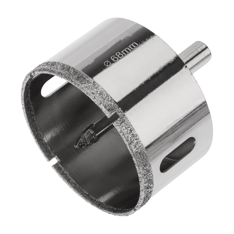 Коронка алмазная KRANZ 68 мм с центровочным сверлом. Используется при сверлении керамогранита, керамики, стекла. Покрытие алмазных коронок выполнено гальваническим способом в два слоя, что обеспечивает эффективное сверление и продолжительный рабочий ресурс инструмента. При сверлении отверстий с использованием алмазных коронок все работы производятся только с охлаждением, путем подачи в рабочую зону воды.