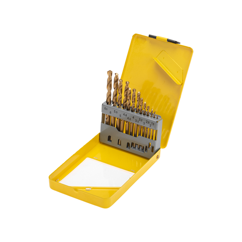 Набор сверл по металлу D1.5-6.5мм через 0.5мм, 3.2мм 4.8мм HSS Титан 13шт металлический кейс Kranz