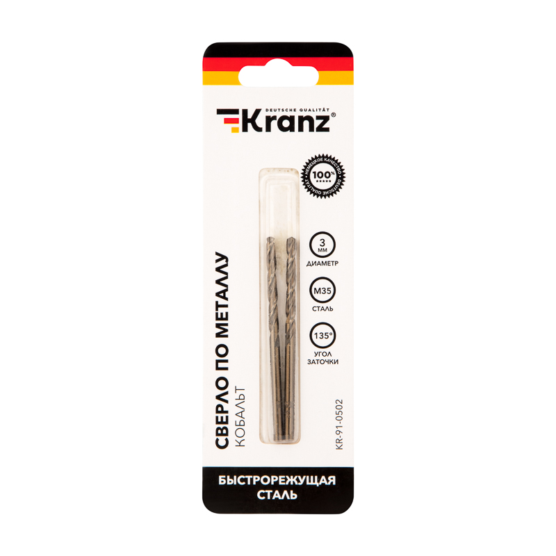 Сверло по металлу 3мм HSS DIN338 2шт Kranz «Кобальт» (400)