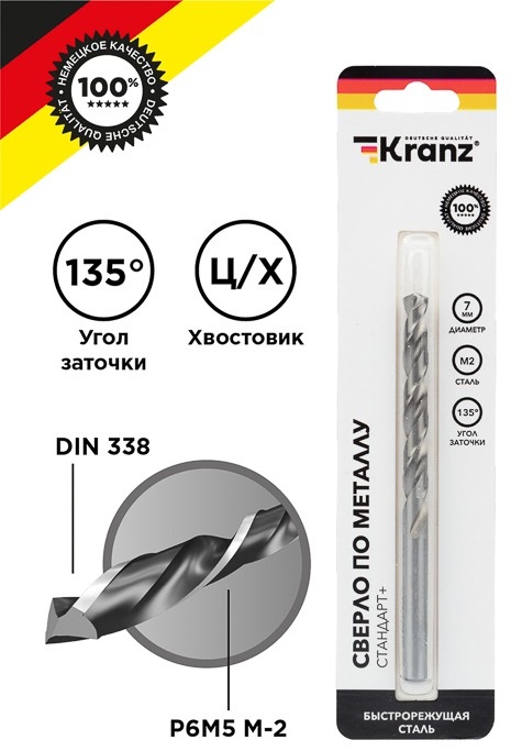 Сверло по металлу 7мм P6M5 M-2 Kranz «Стандарт+» (400)