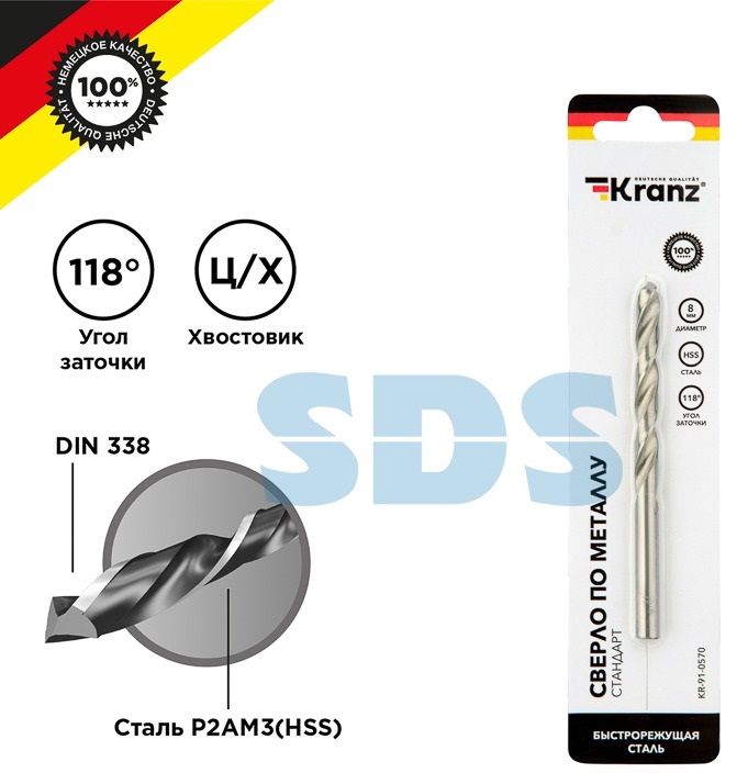 Сверло по металлу 8мм HSS DIN338 1шт Kranz (200)