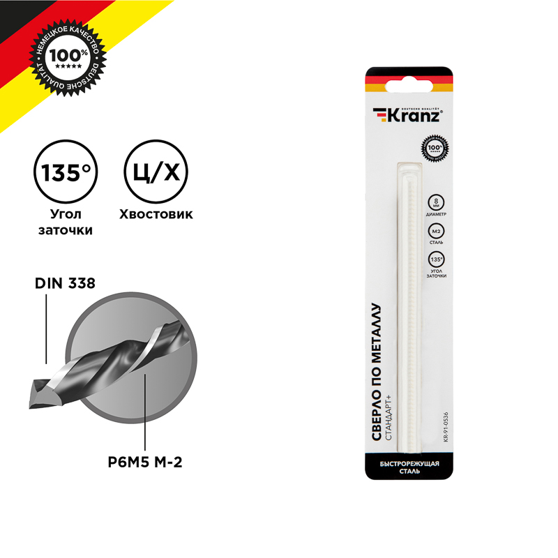 Сверло по металлу 8мм P6M5 M-2 Kranz «Стандарт+» (1)