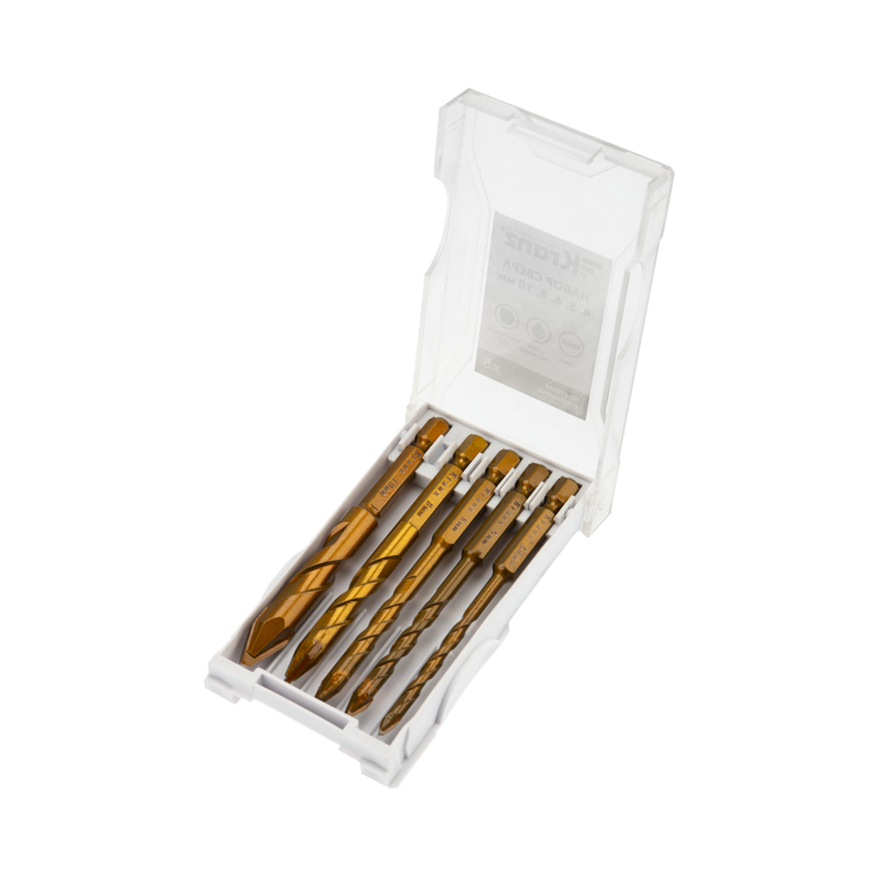 Набор сверл по стеклу и керамике 4-10мм 5шт. шестигранный хвостовик сухое сверление Kranz