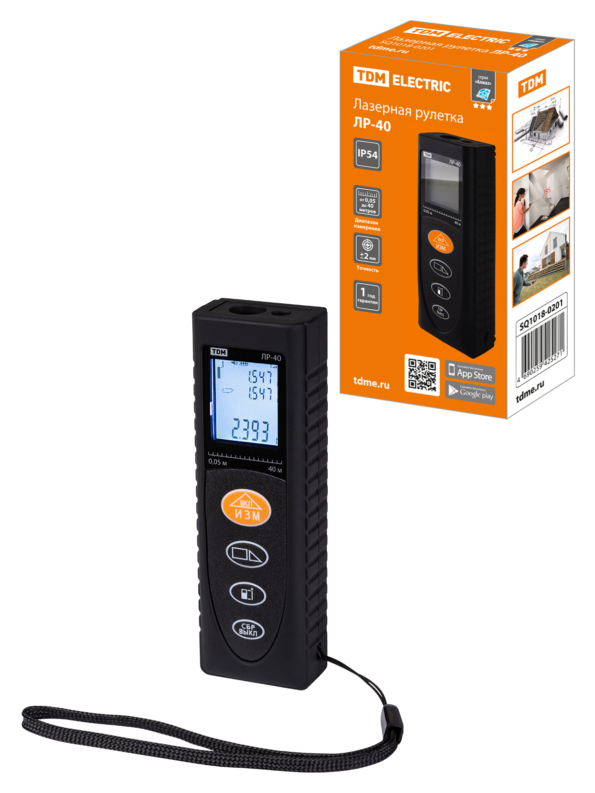 Дальномер лазерный 40м IP54 2xR03 TDM Алмаз ЛР-40 (500)