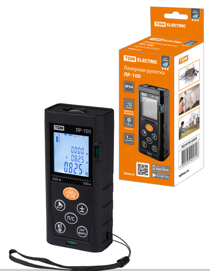 Лазерная рулетка ЛР-100 100м точность 2 мм подсветка IP54 2хAAA “Алмаз” TD