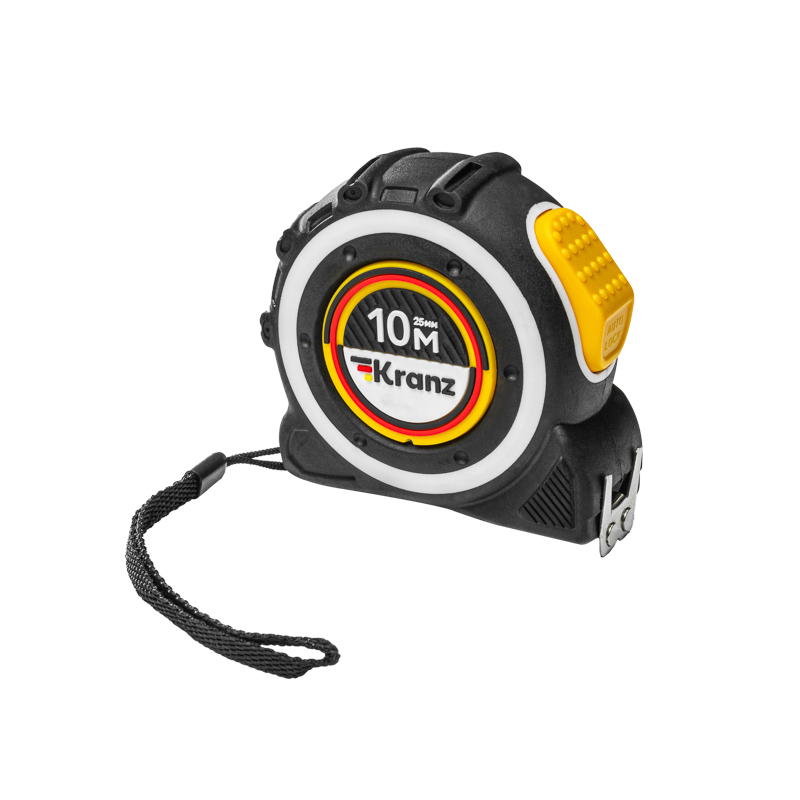 Рулетка 10м х 25мм двусторонний магнитный зацеп нейлон автоматическая фиксация Kranz (6)