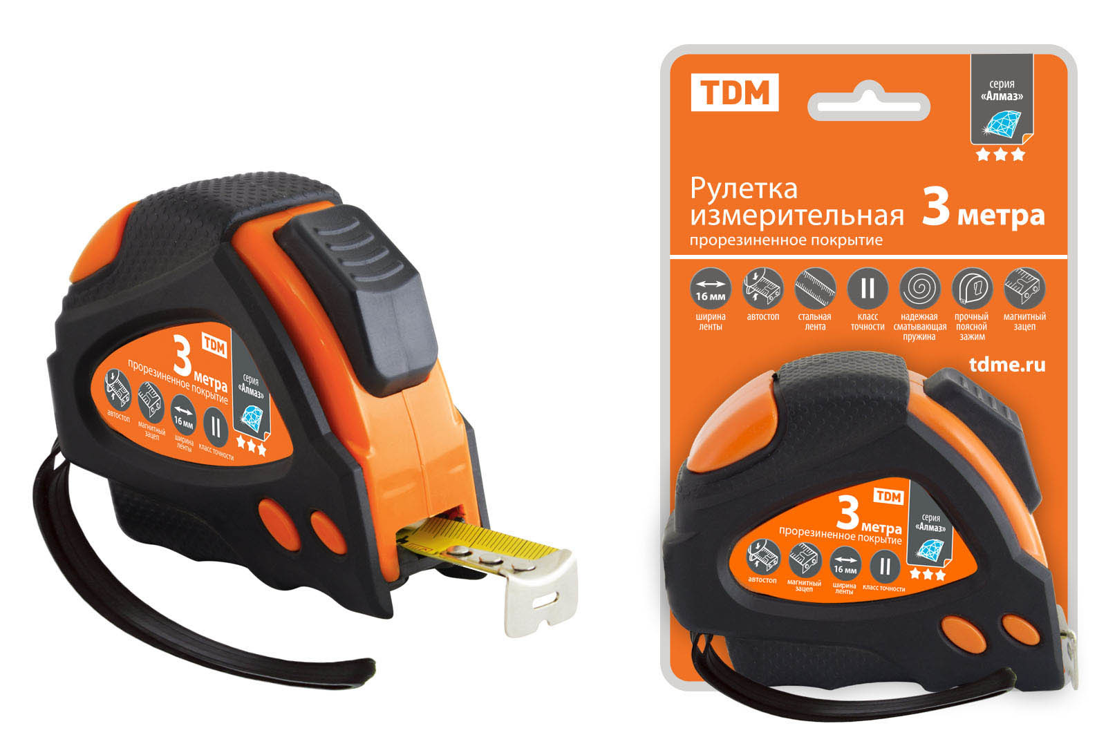 Рулетка 3м x 16мм автостоп Алмаз TDM (1/72)