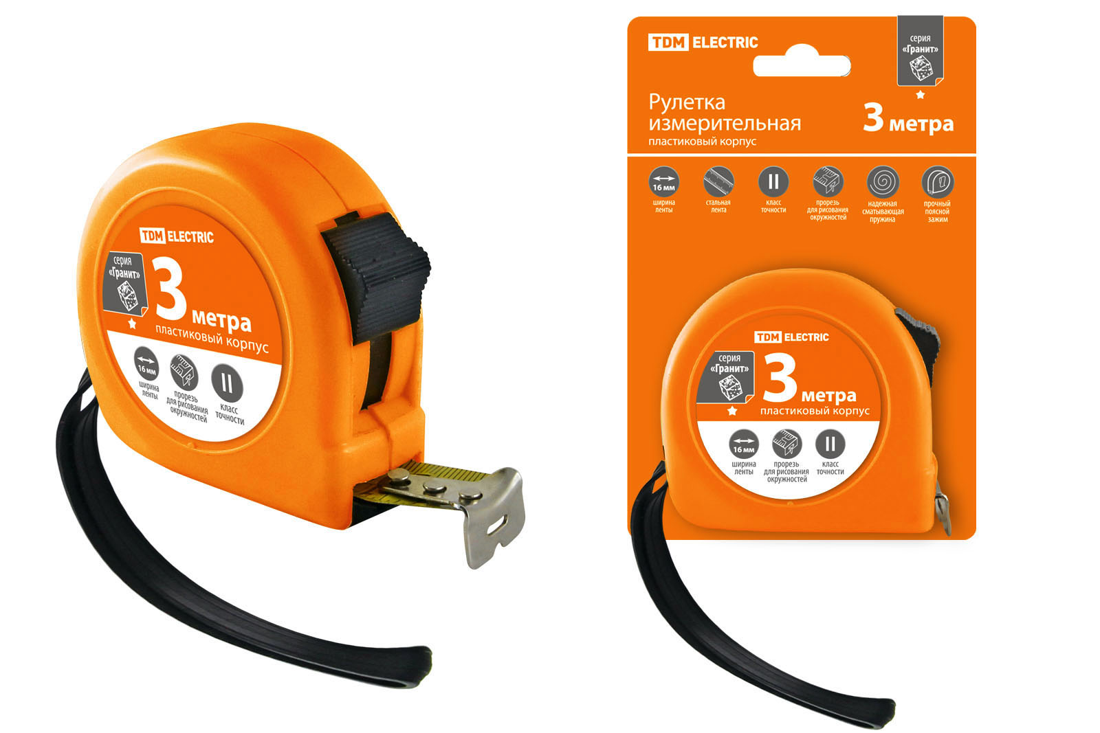 Рулетка 3м x 16мм Гранит TDM (12/120)
