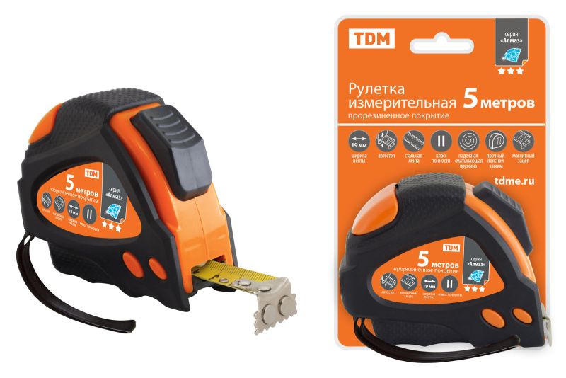 Рулетка 5м x 19мм автостоп Алмаз TDM (1/60)