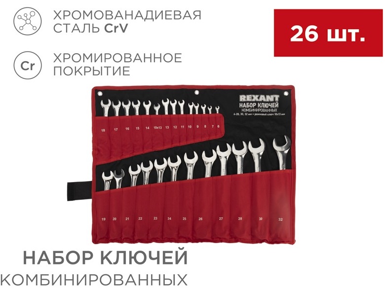 Набор ключей гаечных комбинированных 6-32мм СR-V 26шт Rexant (4)