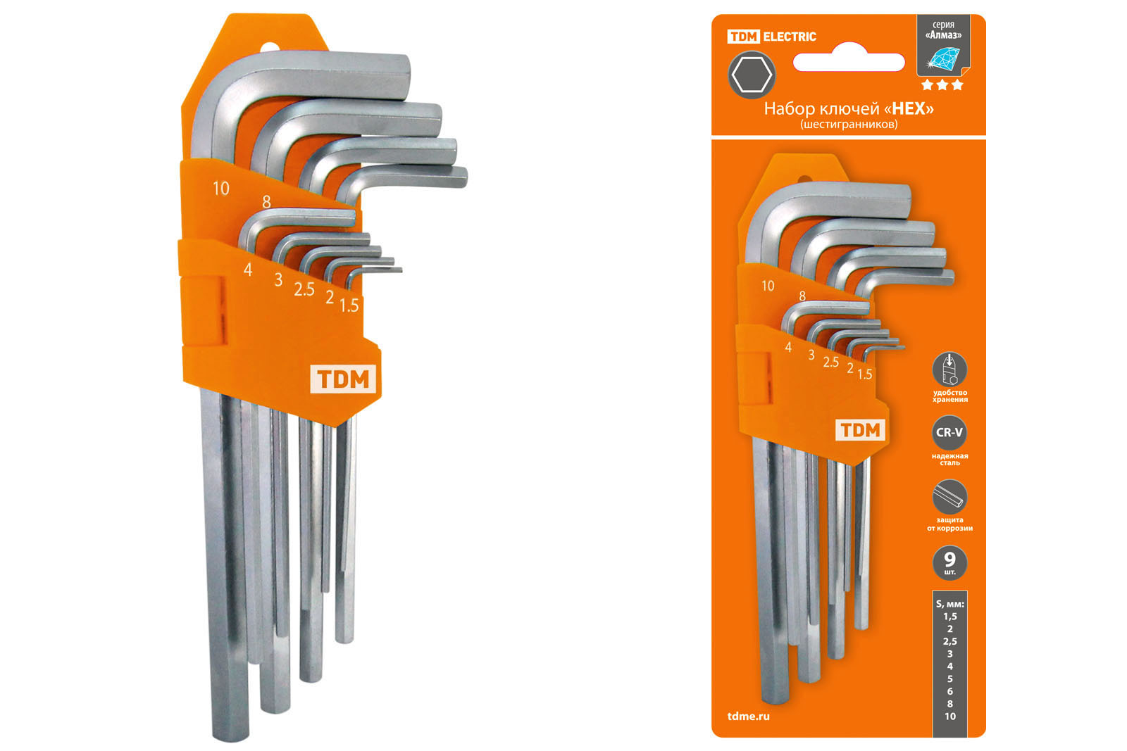 Набор ключей HEX 1.5-10мм 9шт длинные TDM (8)