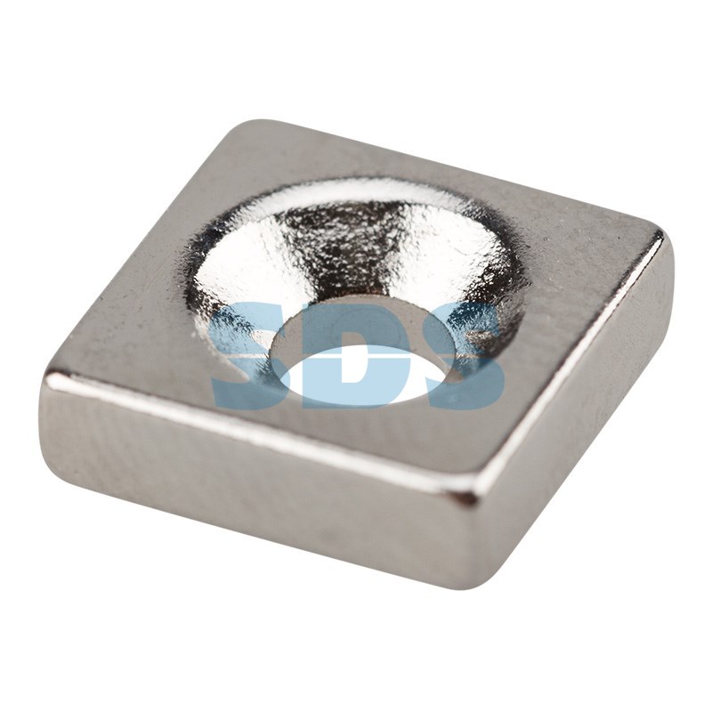 Главная особенность данной модели — небольшое внутреннее отверстие с расширяющимся углублением (зенковка). Благодаря ему неодимовый магнит эффективно используется как крепление или прижим. Фиксируется на любых поверхностях шурупами.