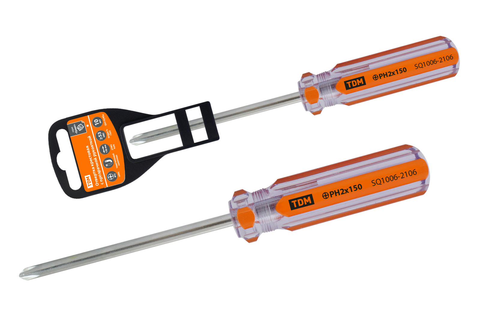 Отвертка крестовая PH2x150мм прозрачная рукоятка TDM (12/240)