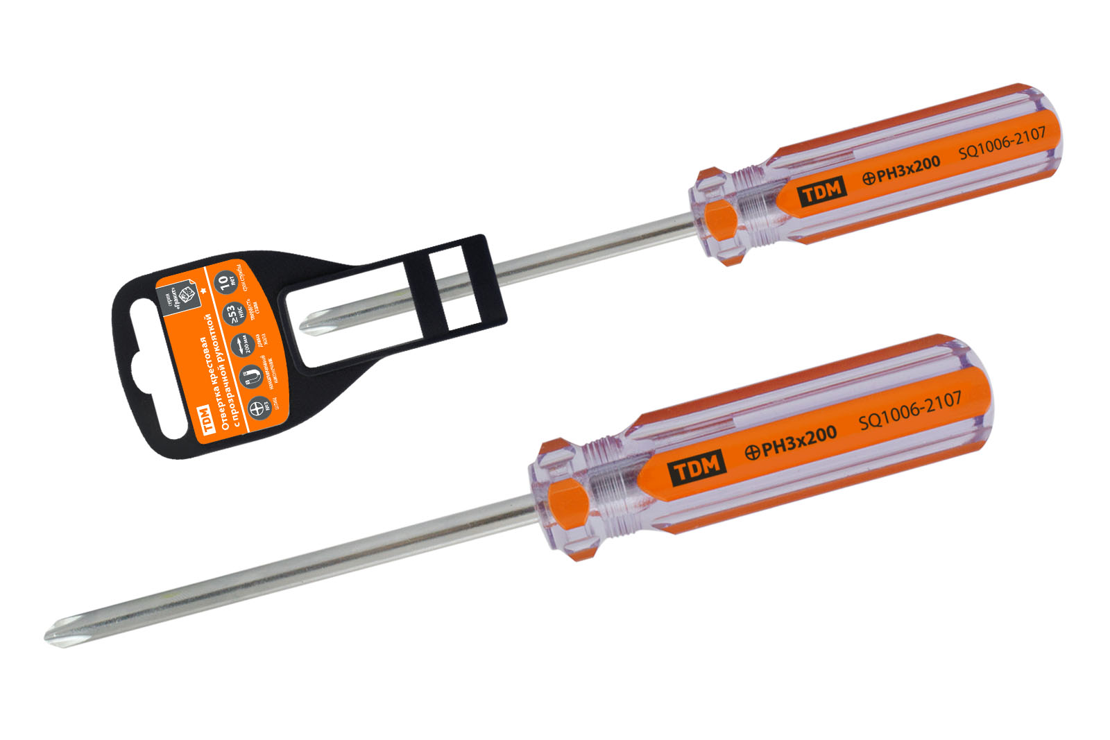 Отвертка крестовая PH3x200мм прозрачная рукоятка TDM (12/240)