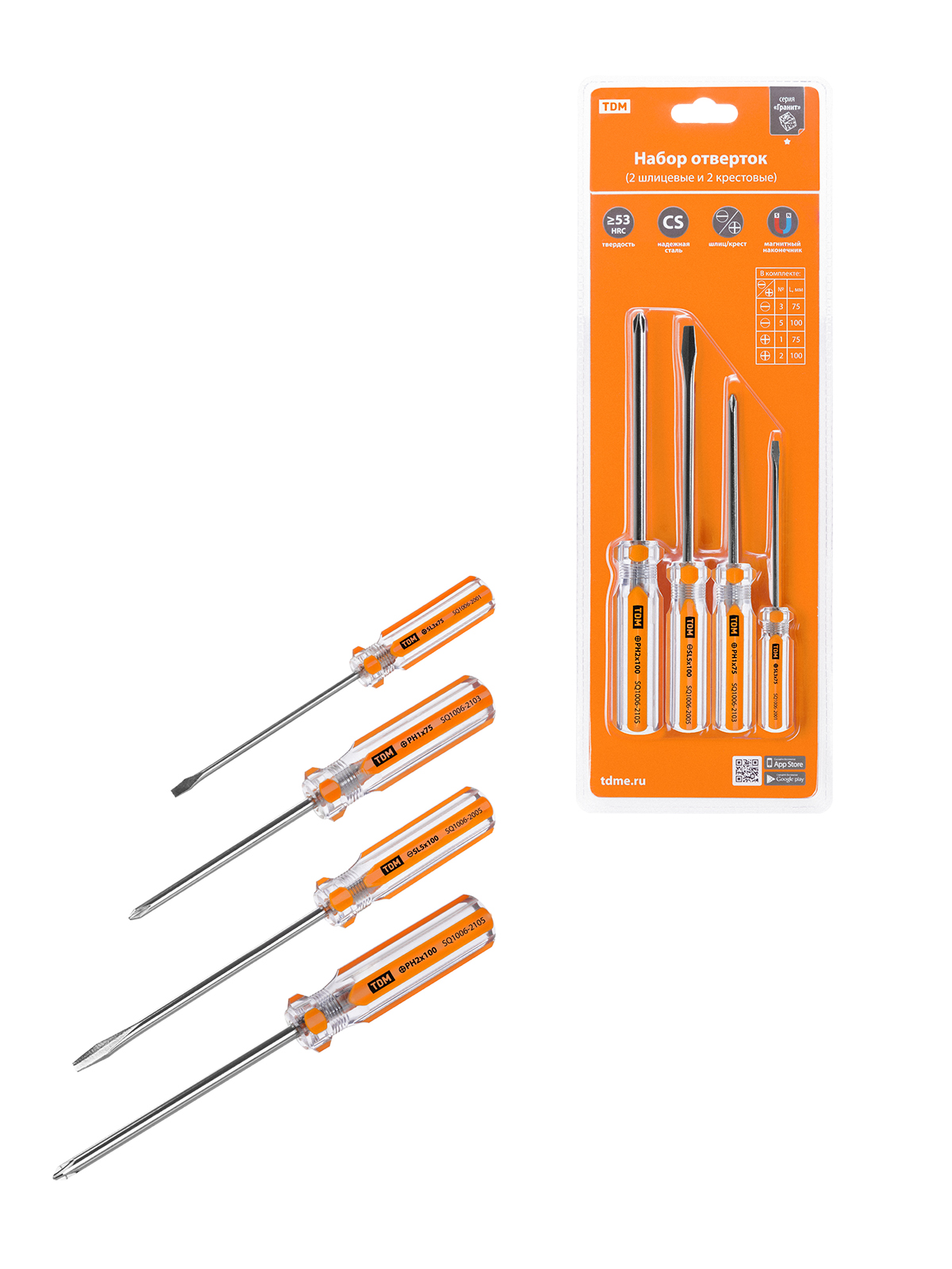 Отвёртки набор TDM 4шт 2-шлиц 2-РН BL (36)