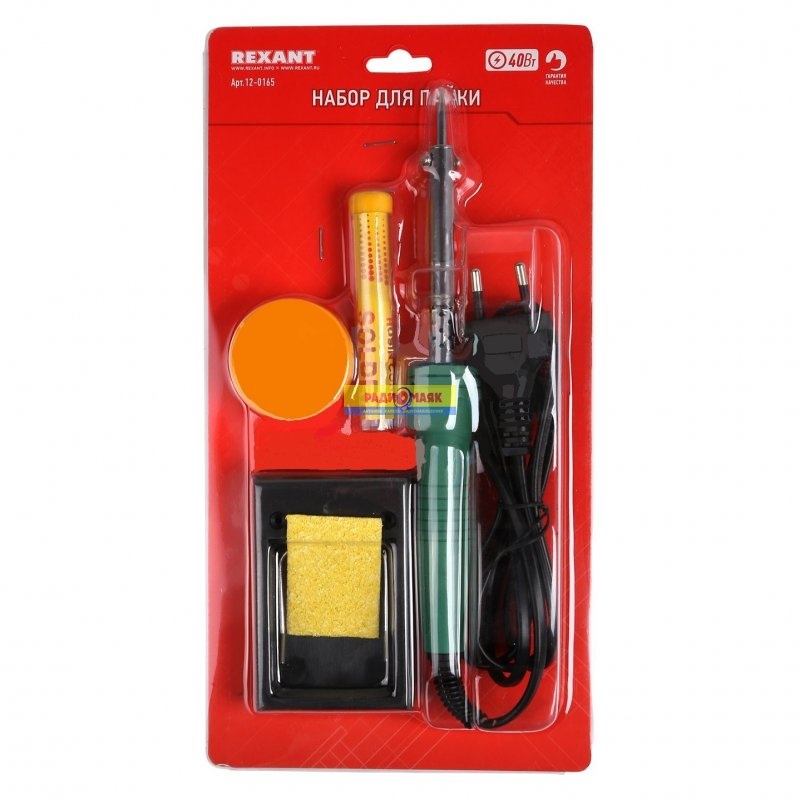 Набор для пайки (паяльник 30Вт, подставка, губка для удаления припоя, канифоль, припой) Rexant (20)