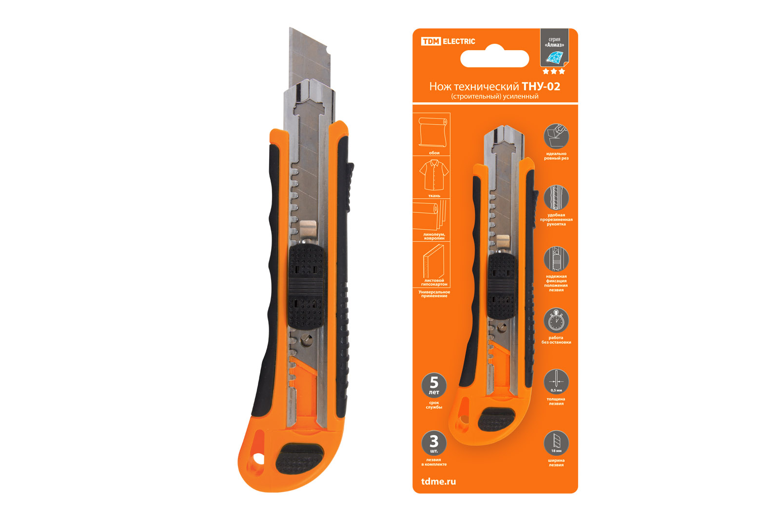 Нож технический ТНУ-02 18мм усиленный TDM (12)
