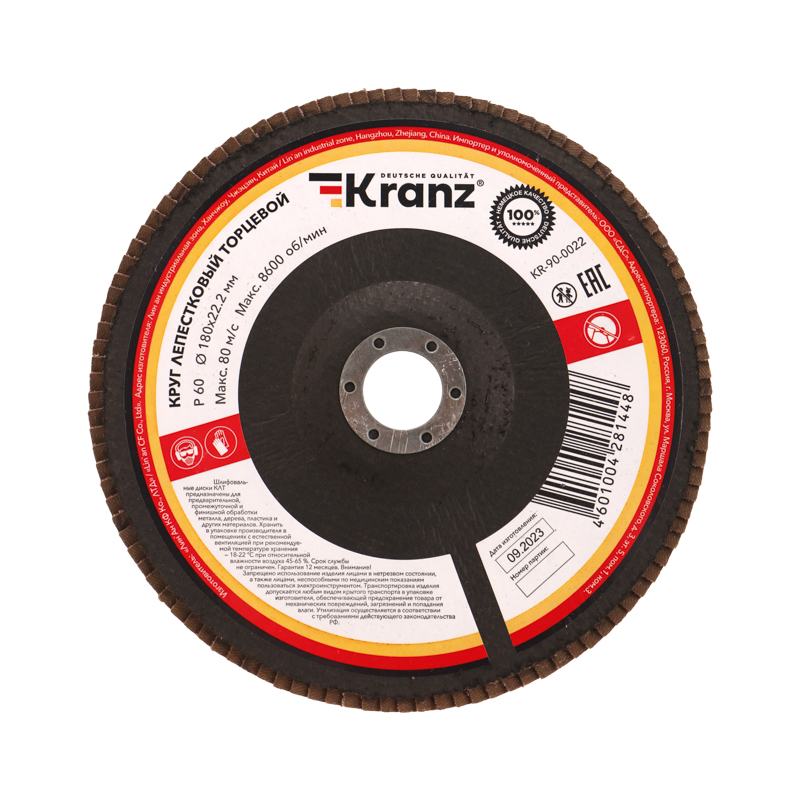 Круг лепестковый торцевой 180х22мм Р60 Kranz (1/10)
