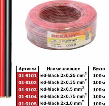 Кабель акустический 2х0.25 красно-черный Rexant (100/800)