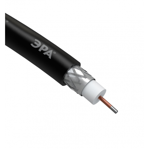 Кабель RG-6U, 75 Ом, CCS/(оплётка Al 64%), PE чёрный 100м Эра SIMPLE (1)