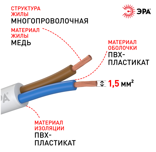 Провод ПВС 2х1,5 ГОСТ 7399-97 белый ЭРА (100)